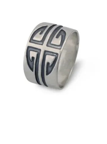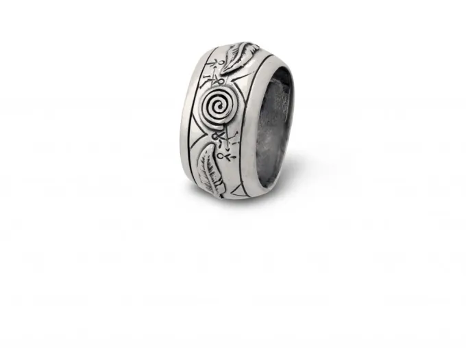 Масивен сребърен пръстен, част от трайбъл серията на Nikol@s. Изкуството, с внимание към всеки детайл. Ръчна изработка, 925 проба, сребърна красота! Модел 215R на Студио Николас, български производител на бижута за мъже : синджири, пръстени, медальони и гривни. Sterling silver 925.
