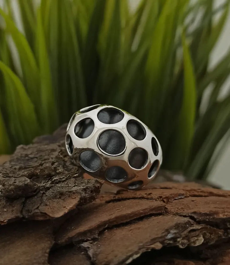 Nikol@s е изкуствoто, с внимание към всеки детайл. Ръчна изработка, 925 пробa, сребърна  красота! Пръстенът от сребро е бижу, което има отвори или прорези по външната  повърхност. Тази изработка е често срещан дизайн при модерните и уникални пръстени.Съществуват много различни стилове и форми: някои бижута имат единичен отвор., който се простира по цялата дължина на пръстена. А други модели имат повече малки отвори, разположени върху купула на пръстена. Пръстените от сребро с отвори са стилни и съвременни. Затова могат да бъдат подходящи за много поводи, като партита, сватби или други официални събития. Те също така могат да бъдат носени ежедневно като аксесоар, който ще добави индивидуалност и стил към облеклото ви.