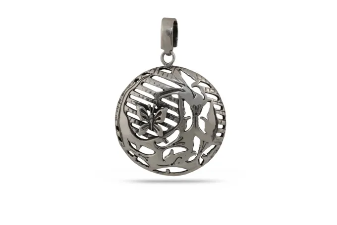 Дамски сребърен медальон с “вплетени” пеперуди, масивен модел 781M от Студио Николас. Нестандартни бижута, които ще Ви заинтригуват. Открийте Вашият личен символ сред уникалните сребърни медальони на Студио Николас. Nikol@s е изкуството, с внимание към всеки детайл и висококачествена ръчна изработка от сребро с 925 проба, сребърна красота!широчина: 35 мм./ предлага се без верижка