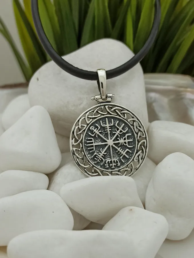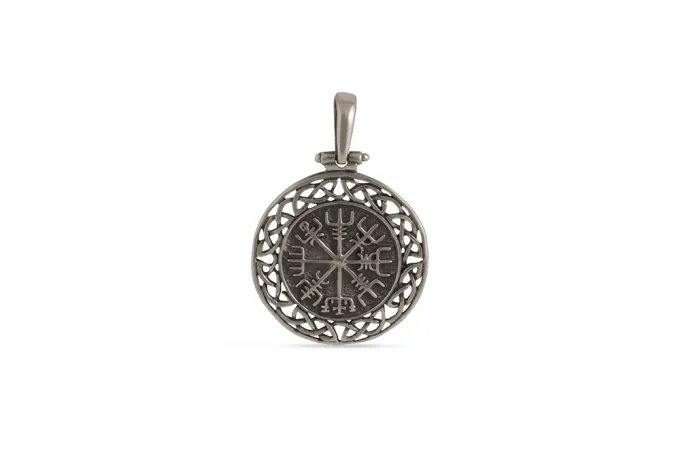 Масивен сребърен медальон „VEGVIZIR“ 1411M. Изобразен исландски символ, известен още като викингски компас. Прекрасен и прецизно изработен amulet от сребро 925 модел на Студио Николас.