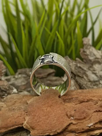Масивна сребърна халка 1596r. Халка с асиметрична широчина на лентата сребърни бижута от Студио Николас. Приблизително тегло: 10.50гр. / широчина на лентата в горната част на халката: 21мм. ; 16мм. в долната ѝ част.