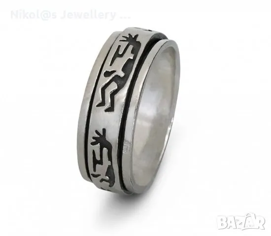 Сребърен пръстен тип халка, която се върти – част  от трайбъл серията на Nikol@s. Арт модел 389T на Студио Николас, български производител на бижута за мъже : синджири, пръстени, медальони и гривни. Sterling silver 925.