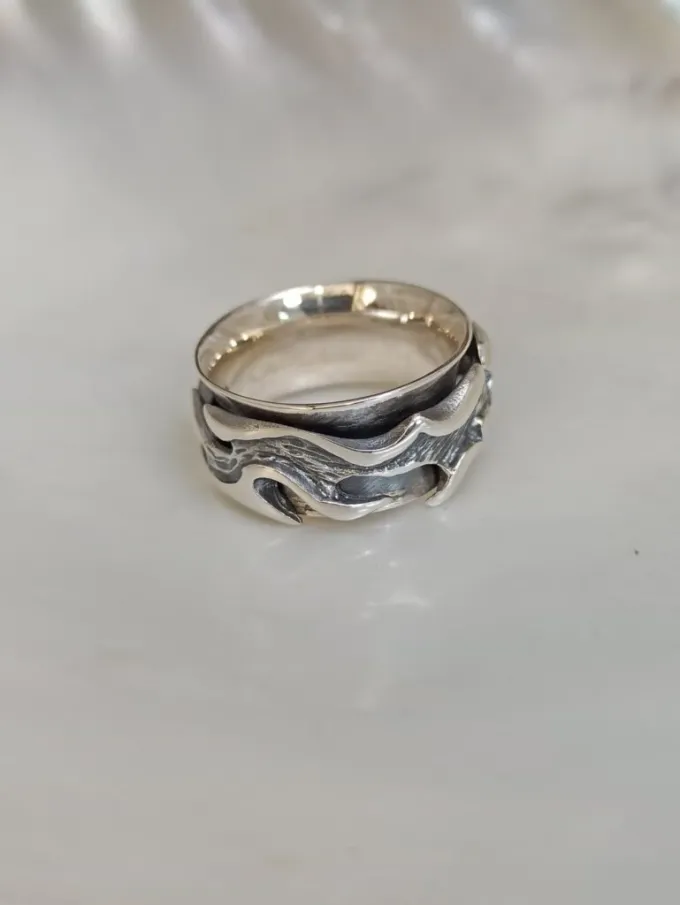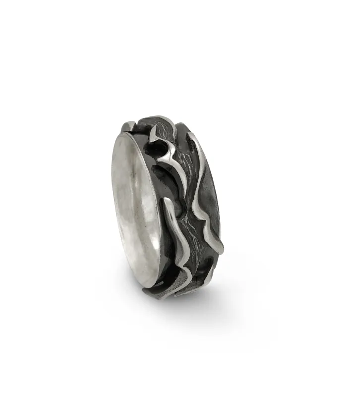 Сребърен пръстен с две “лагеруващи” халки, част от трайбъл серията на търговска марка Nikol@s. Модел 392T на Студио Николас – български производител на сребърна бижутерия за мъже и жени. Подаръци от сребро!