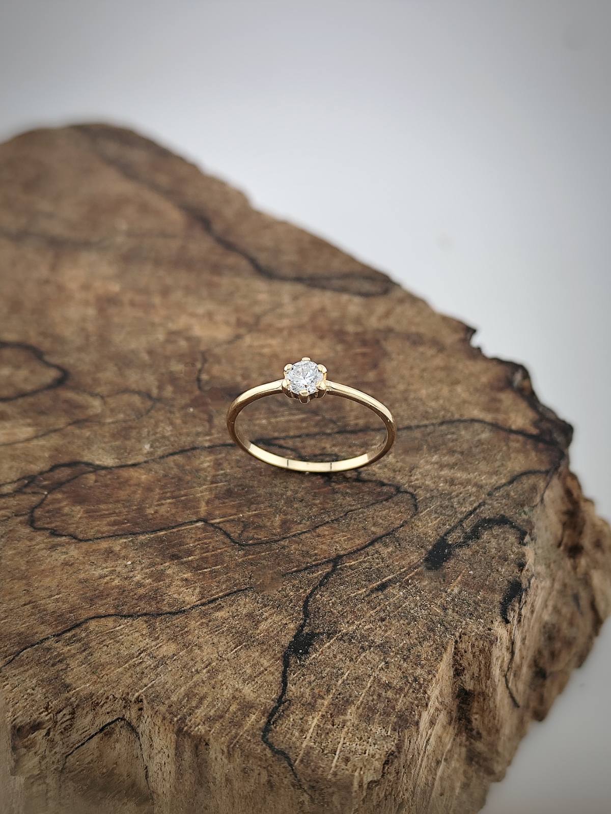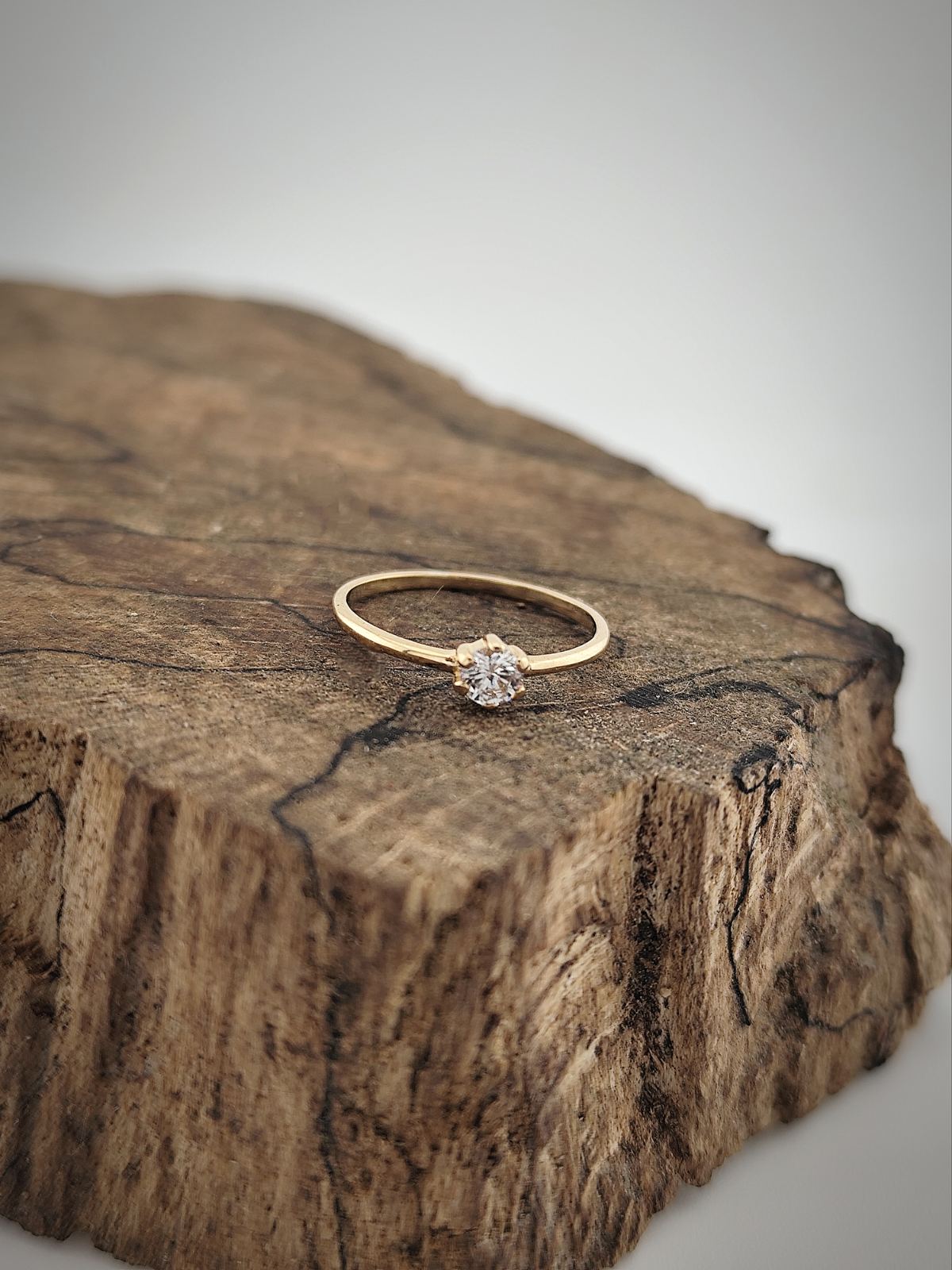 Изработен от висококачествено злато 14К, без алергени. Всеки пръстен е ръчно изработен от майстори ювелири, с внимание към прецизността и комфорта. Цирконът е фиксиран стабилно и подбран заради своята чистота и дълготраен блясък.