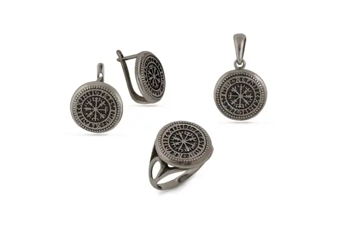 Подарете си бижу със символите характерни са викинската култура: ВЕГВИЗИР, ВАЛКНУТ, Дърво на Живота Yggdrasil, Чукът на Тор, Бог Один, Шлем на терора.Поръчка на амулети, Амулет за късмет и успех, Талисман за здраве, Гривни амулети, Гривна на здравето, Амулети цена, Гривни за късмет и щастие, Царски амулет,Колие от викинги, скандинавска висулка, ръчно изработена огърлица., езическа огърлица, викингска висулка, подарък за негокласически накити, годежни пръстени, халки, бижута за бебе, etno bijuta, tradicionni balgarski bijuta. Медальон от сребро с викингски компас „VEGVISIR“