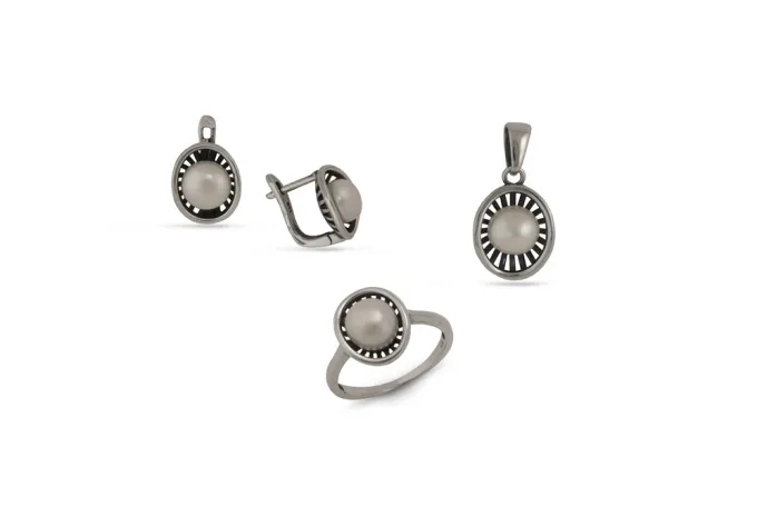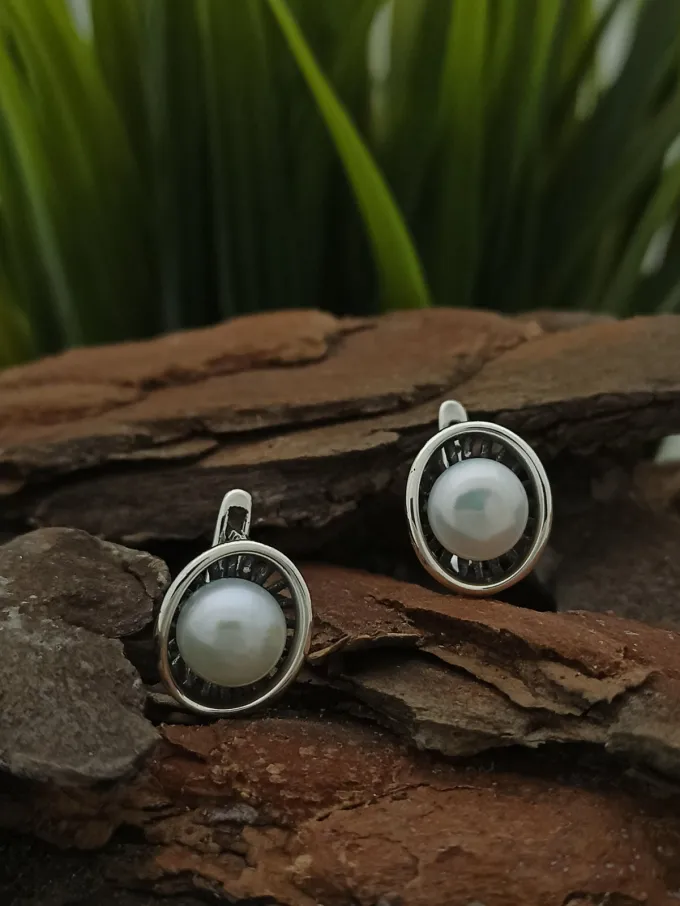 Обеци от сребро с речна перла 1406E. Сребърни обеци в изчистен дизайн с инкрустирани речни перли. Нежен модел 1406E с прецизна ръчна изработка от Студио Николас, български производител на сребърна бижутерия за мъже и жени! комплект⇒ с пръстен и медальон⇐ от сребро 925. СЕРТИФИКАТ ЗА АВТЕНТИЧНОСТ