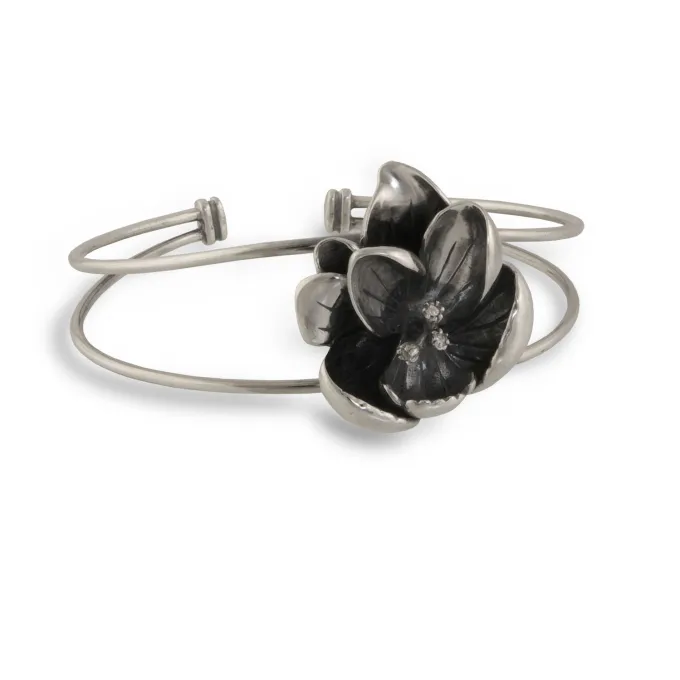 Дамска сребърна гривна “Цвете” 913B. Солидна дамска сребърна гривна във формата на цвете с монтирани циркони на тичинките. Модел на фабрика за сребърна бижутерия – Студио Николас. Nikol@s е изкуството, с внимание към всеки детайл. Ръчна изработка, 925 проба, сребърна красота!