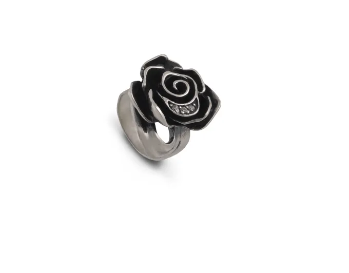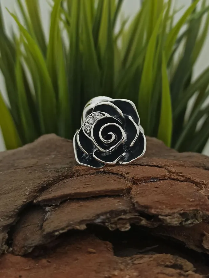 Сребърни аксесоари за мъже и жени – обици, пръстени, гривни, колиета, висулки, медальони и масивни ланци на българска бижутерия от сребро и злато с марката Николас! Блестящи, уникални, сребърни красоти, които радват с прекрасни линии, изящни форми и ярки цветове. Ръчната им изработка допълва уникалният вид. Така качеството среща перфектността. Сребърен пръстен “Роза с циркони”.