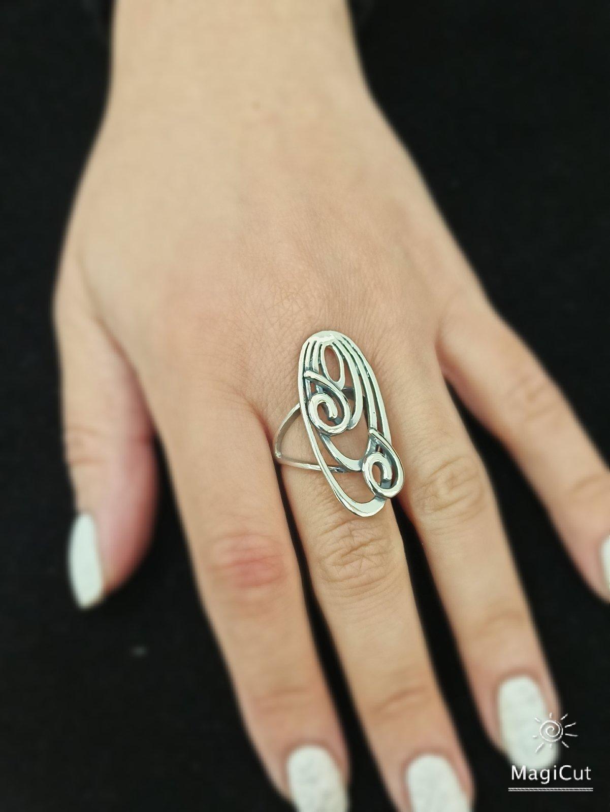 Дамски сребърен пръстен “ЕЛИПСА” 1098r модел на Студио Николас. Прецизна, елипсовидна форма и оригинално вплетени мотиви. Nikol@s е изкуството, с внимание към всеки детайл. Ръчна изработка, 925 проба, сребърна красота!