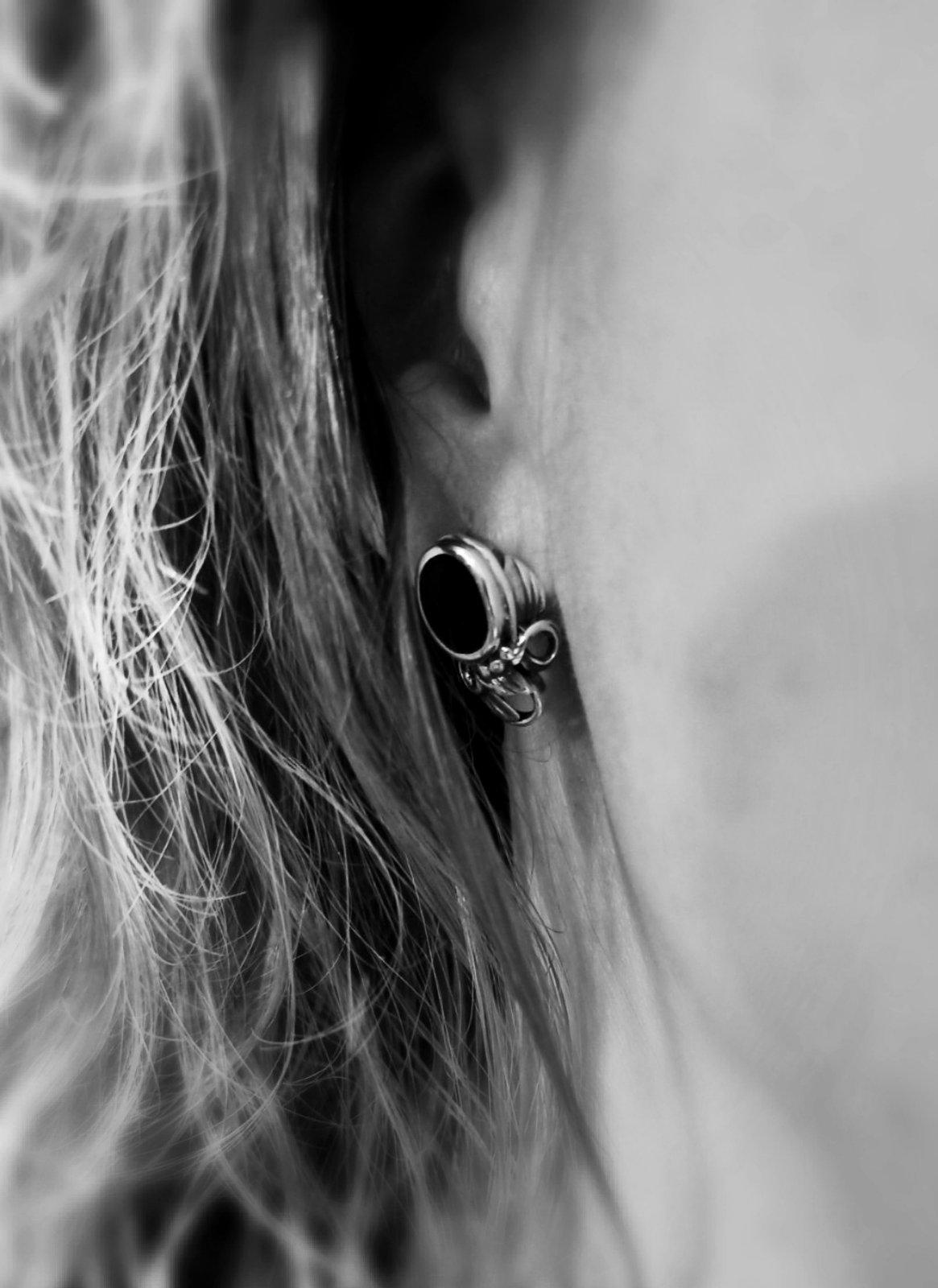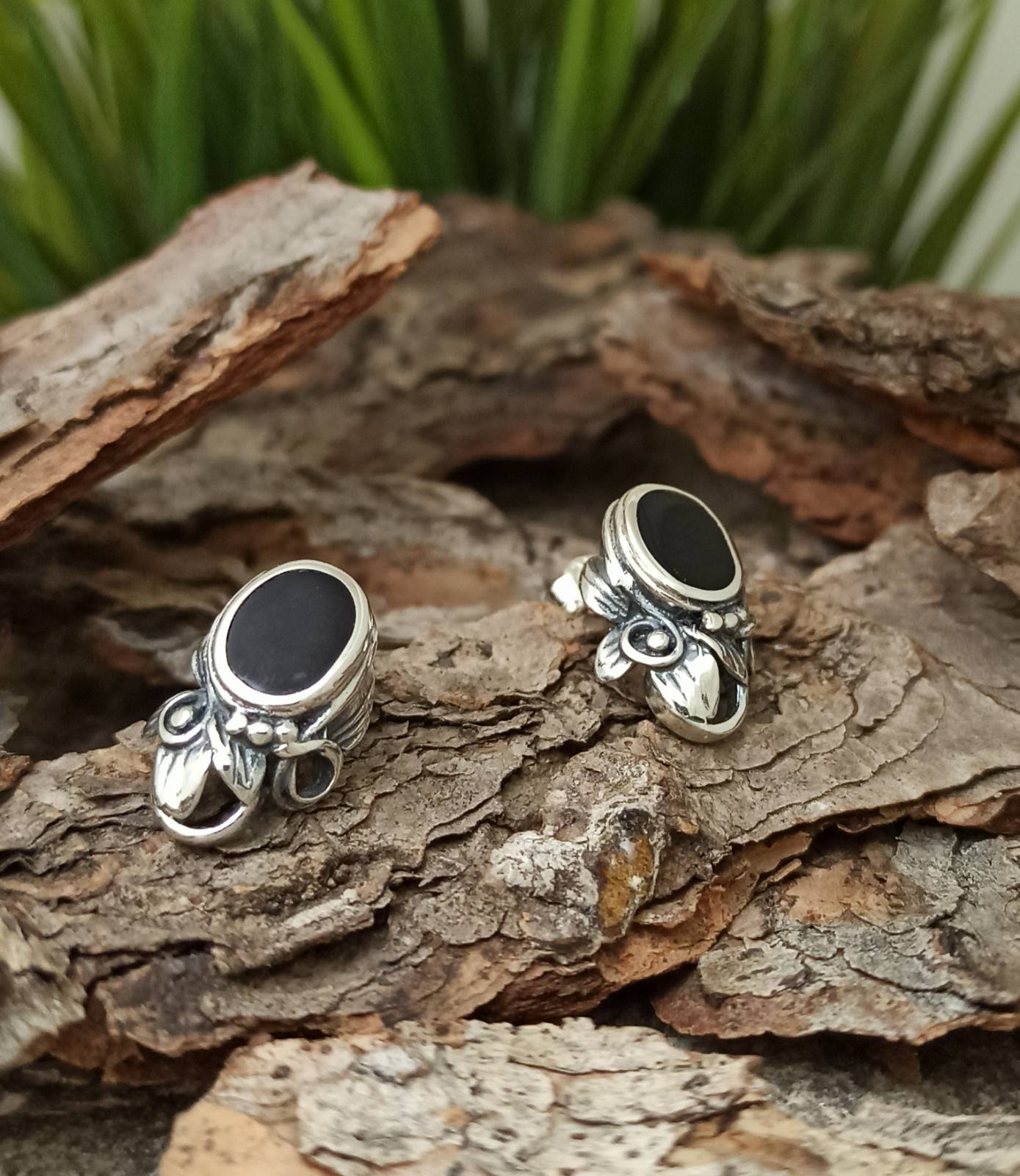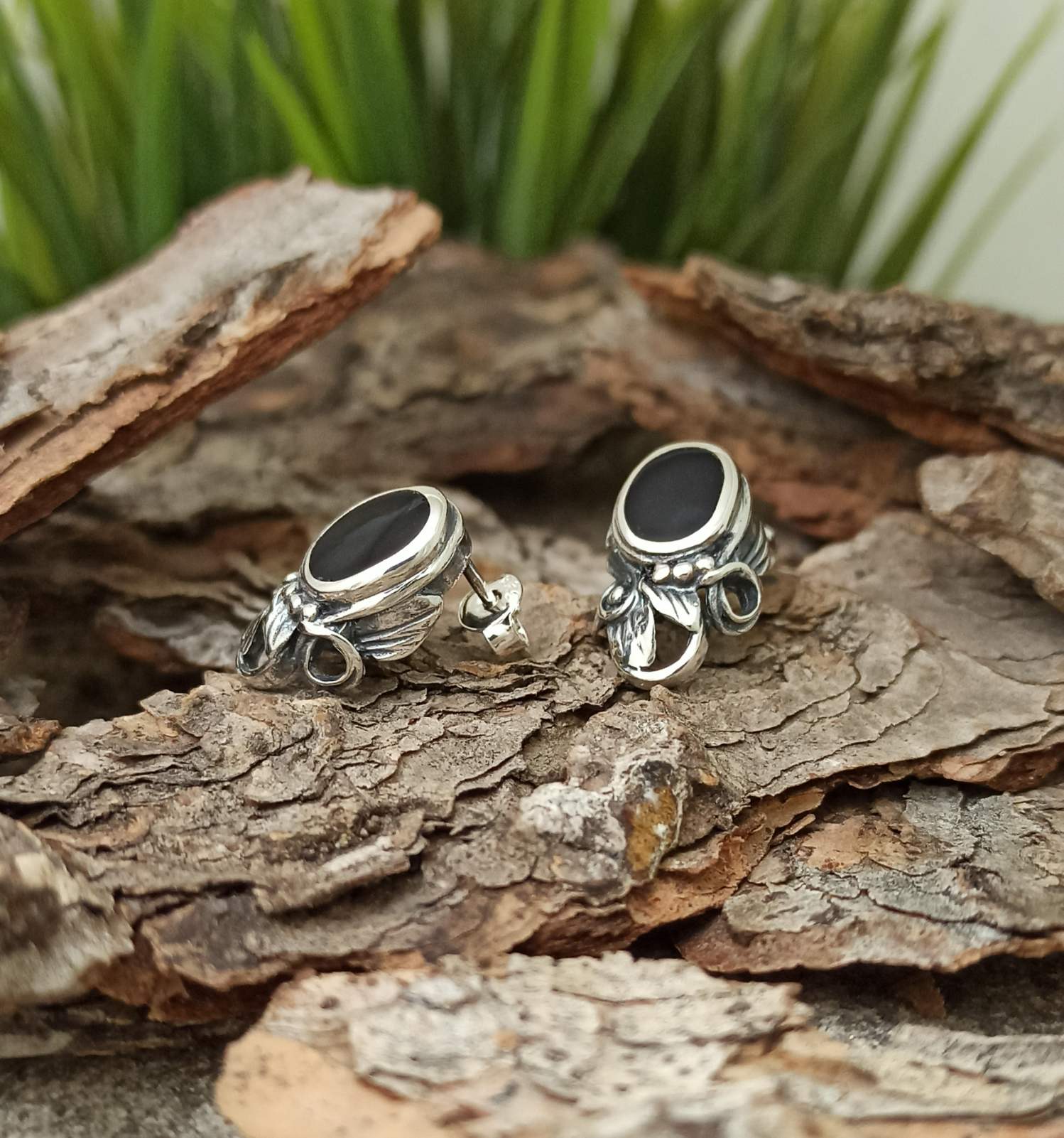Дамски сребърни обеци с черен емайл, прецизно изработен модел 948E на Студио Николас.