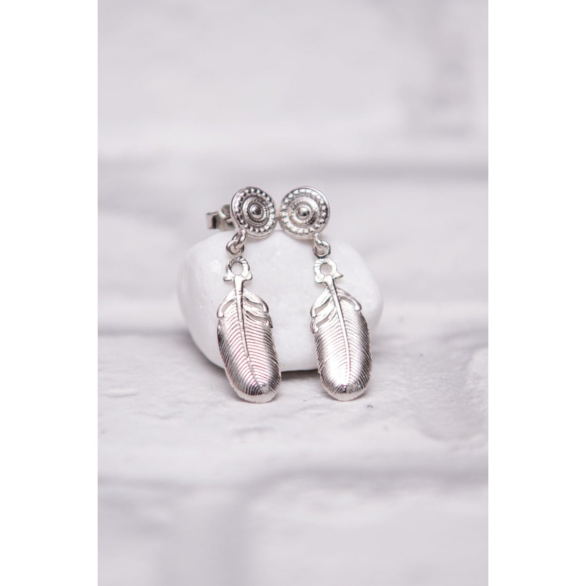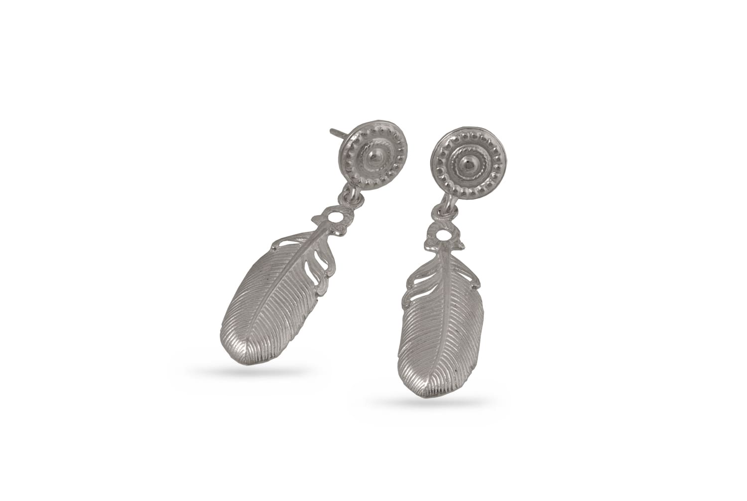 ДАМСКИ СРЕБЪРНИ ОБЕЦИ С ПЕРА 15A висящ модел обици на щифт Студио Николас част от колекцията “Викачи на ангели – ANGEL C@LLER” by Nikol@s. Обици изработени от сребро проба 925 с родиево покритие.
