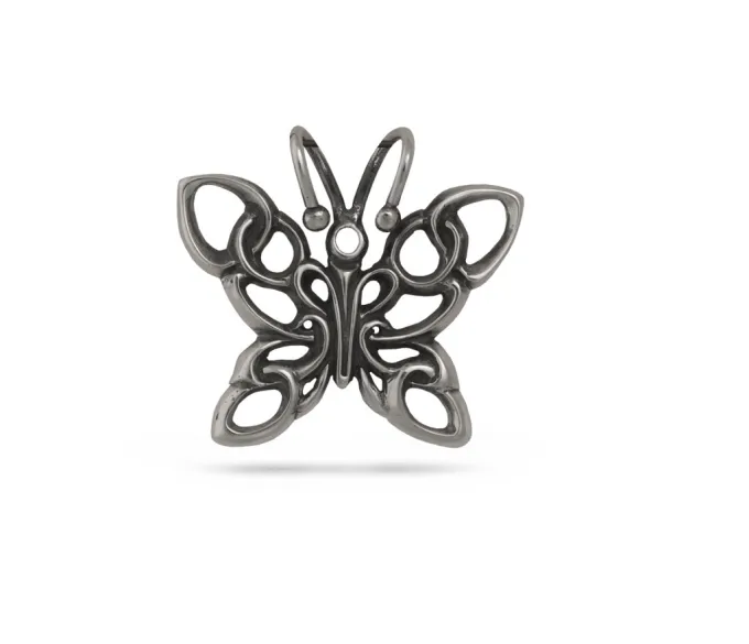 Сребърен медальон “ПЕПЕРУДА”. Висулка от сребро с нежни орнаменти във формата на пеперуда, модел на Студио Николас. Nikol@s е изкуството, с внимание към всеки детайл и висококачествена ръчна изработка от сребро с 925 проба, сребърна красота!