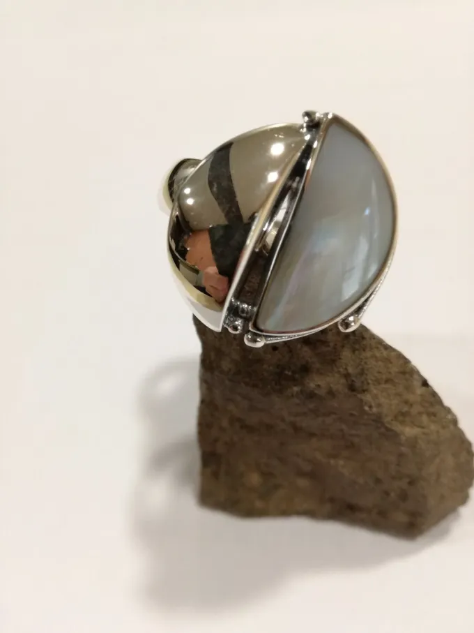 Дамски сребърен пръстен със седеф 1286R Студио Николас. Вярва се, че седефа е символ на душевната чистота и красота. Седефът символизира женското начало, грижи се за спокойствието и семейството.