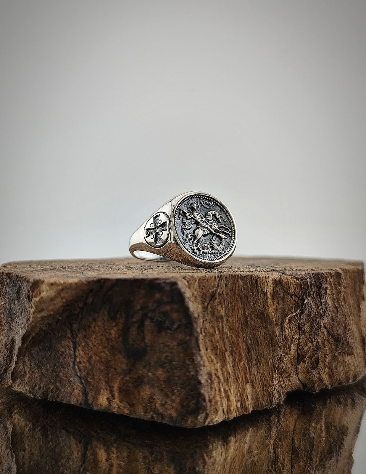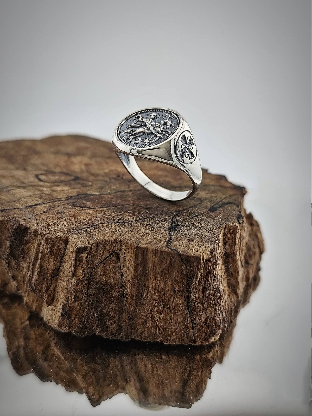 Сребърен пръстен “Свети Георги” 1207R. Nikol@s е изкуствoто, с внимание към всеки детайл. Ръчна изработка, 925 пробa, сребърна  красота!