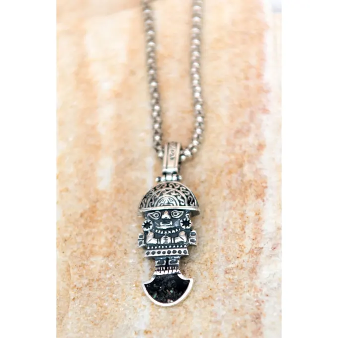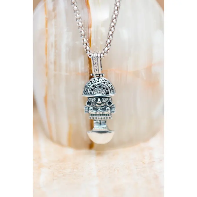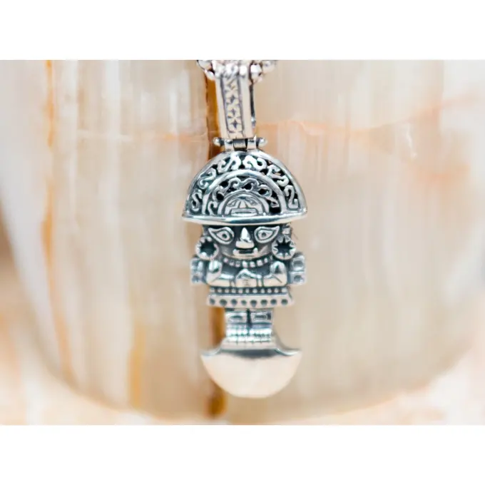 Сребърен медальон “Туми Перу” или “Церемониален нож Туми” е широко разпространен вид колие, което се носи за късмет! Ръчно изработено бижу от сребро 384T – фабрика Студио Николас, което може да бъде допълнено със седеф и емайл!