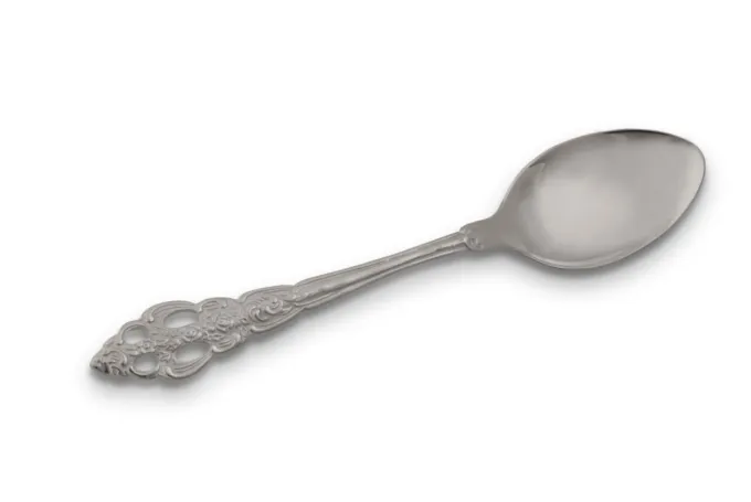 Сребърна лъжица с патиниран релеф върху дръжката за подчертаване на красивите орнаменти, 784L от Студио Николас.