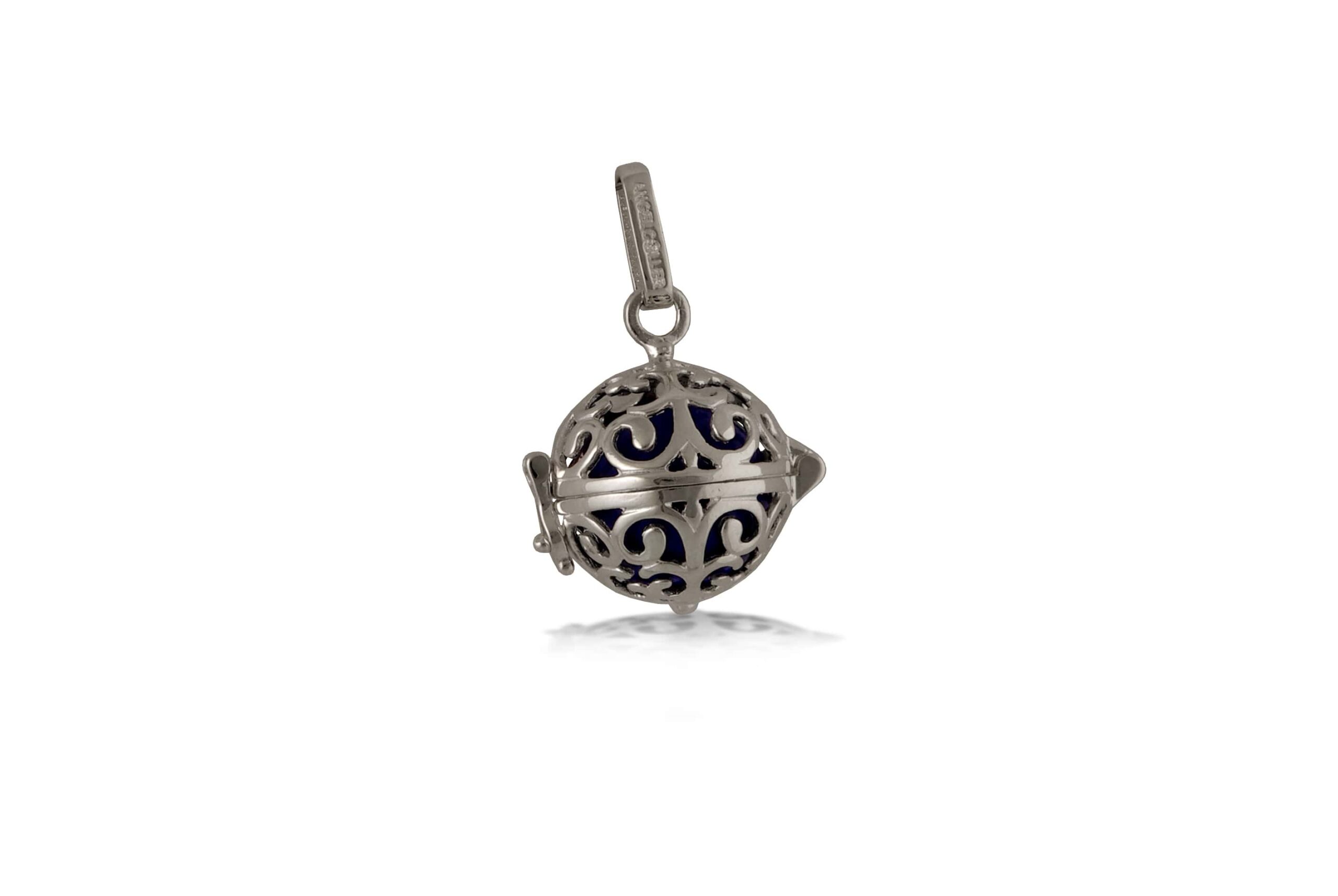 сребърен медальон “ВИКАЧ НА АНГЕЛИ” 1An. Викачи на ангели от серията на “Angel Caller” на “Nikol@s Jewellery Collection®”., посветена на „Ангелите, наричани още пазители, които се считат за помощници в трудни за нас моменти, предотвратяват злини и ни предпазват от грешки“! Сребърната сфера съдържа топка, която при нежно полюшване издава фин и хармоничен звук, даващ спокойствие на детето.