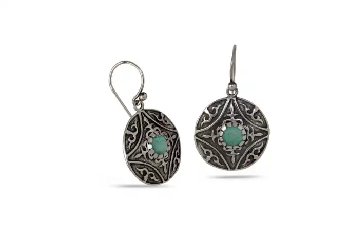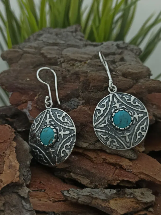 Дамски сребърни обеци с тюркоаз 1196E от сребърни бижута Студио Николас.