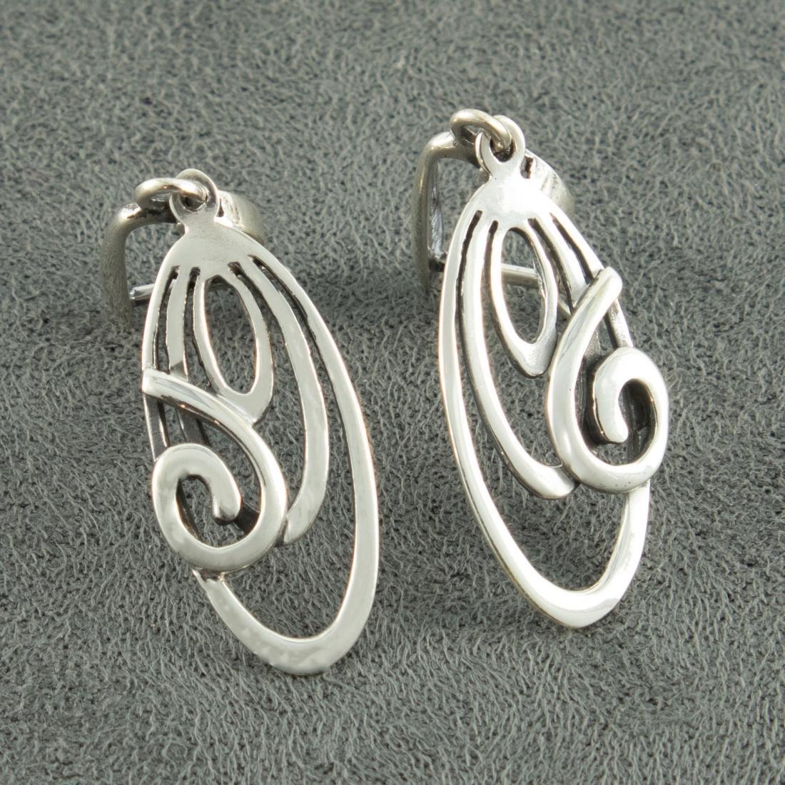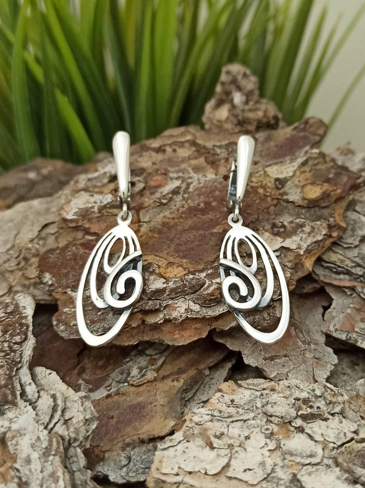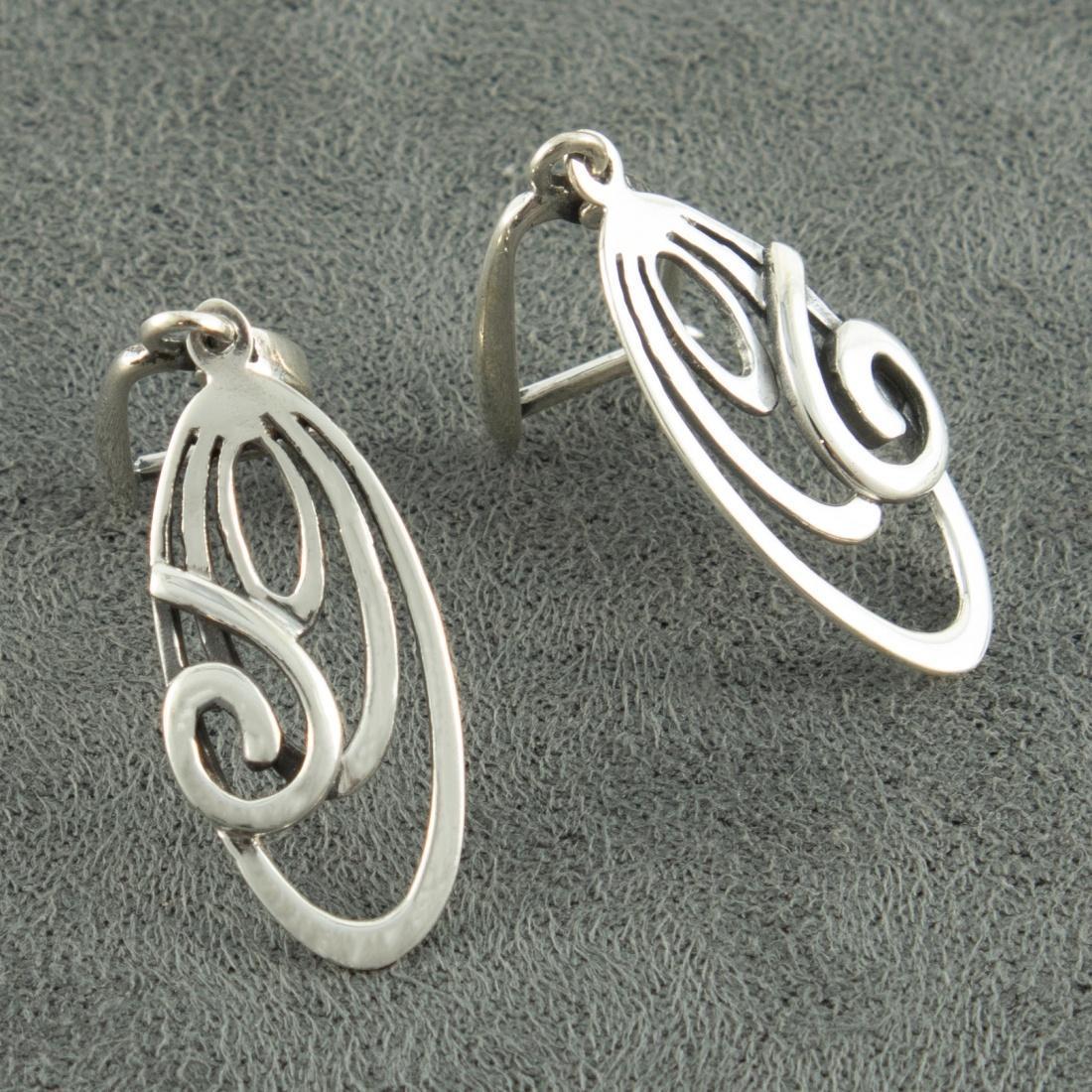 Дамски сребърни обеци “ЕЛИПСА”, прецизна елипсовидна форма и оригинално вплетени мотиви. Елегантни сребърни обици  1096E на Студио Николас. Сребърен комплект: пръстен, обеци и медальон. Nikol@s е изкуството, с внимание към всеки детайл. Ръчна изработка, 925 проба, сребърна красота! СЕРТИФИКАТ ЗА АВТЕНИЧНОСТ