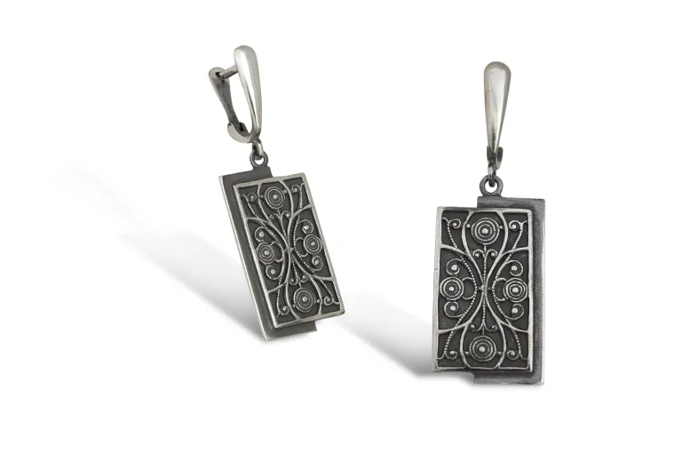 Дамски сребърни обеци „Филигран“ висящи и масивни модел 488E от фабрика за производство на бижута от сребро и злато Студио Николас.