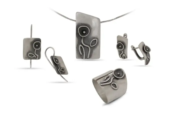 Дамски сребърни обеци 1305E. Сребърни обеци на върбило, прецизна ръчна изработка от Студио Николас! Обеци от стърлингово сребро, авторски модел ръчна изработка модел с цвете от фабрика за сребърна бижутерия – Студио Николас. Обици от сребро с цветя на закопчалка кобилица. Комплект с дамски сребърни : пръстен, обеци и медальон. СЕРТИФИКАТ ЗА АВТЕНТИЧНОСТ