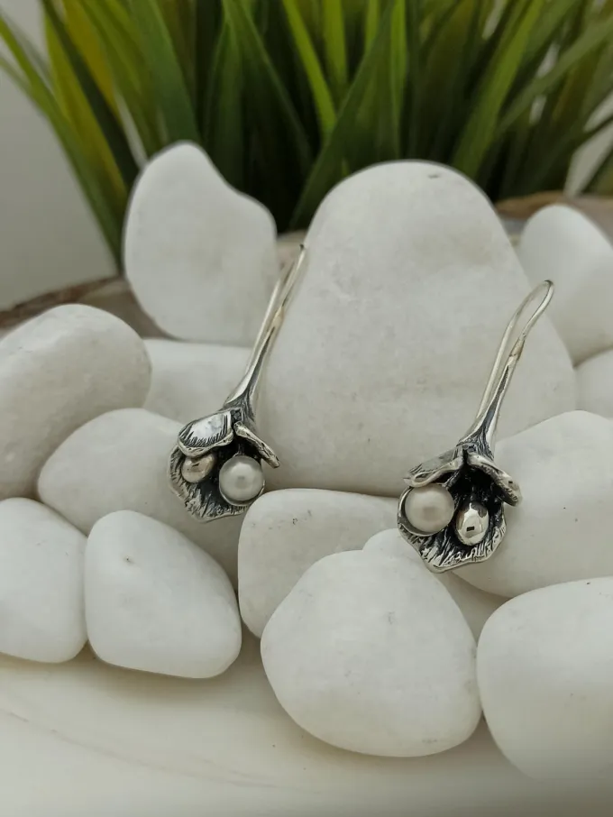 СРЕБЪРНИ ОБЕЦИ С ПЕРЛА с ръчна изработка от Студио Николас. СЕРТИФИКАТ ЗА АВТЕНТИЧНОСТ