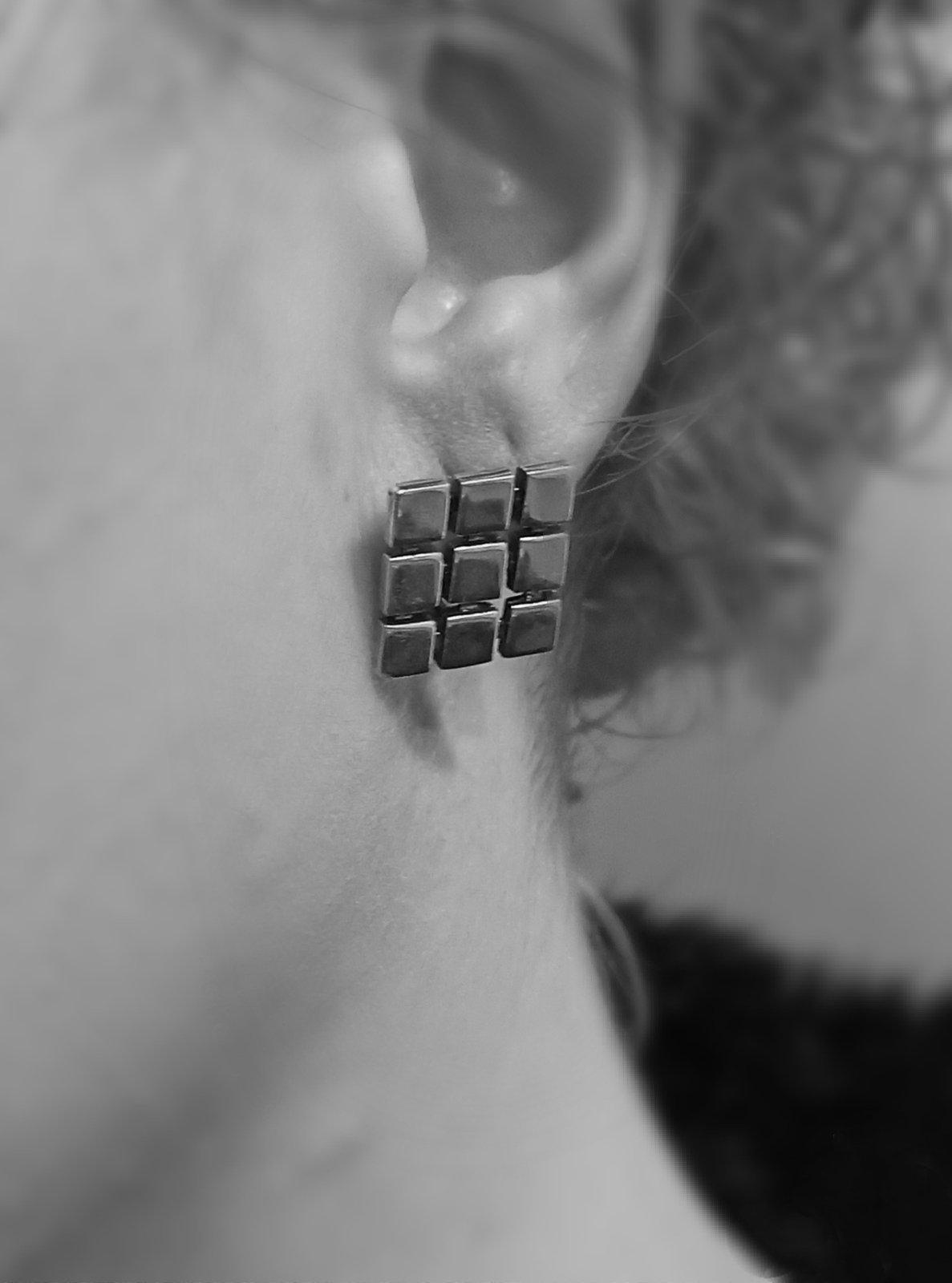 Дамски сребърни обеци от множество квадрати, стилен и изчистен модел на английско закопчаване от Студио Николас!