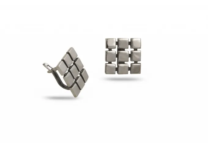 Дамски сребърни обеци 669E. Дамски сребърни обеци от множество квадрати, стилен и изчистен модел на английско закопчаване от Студио Николас!