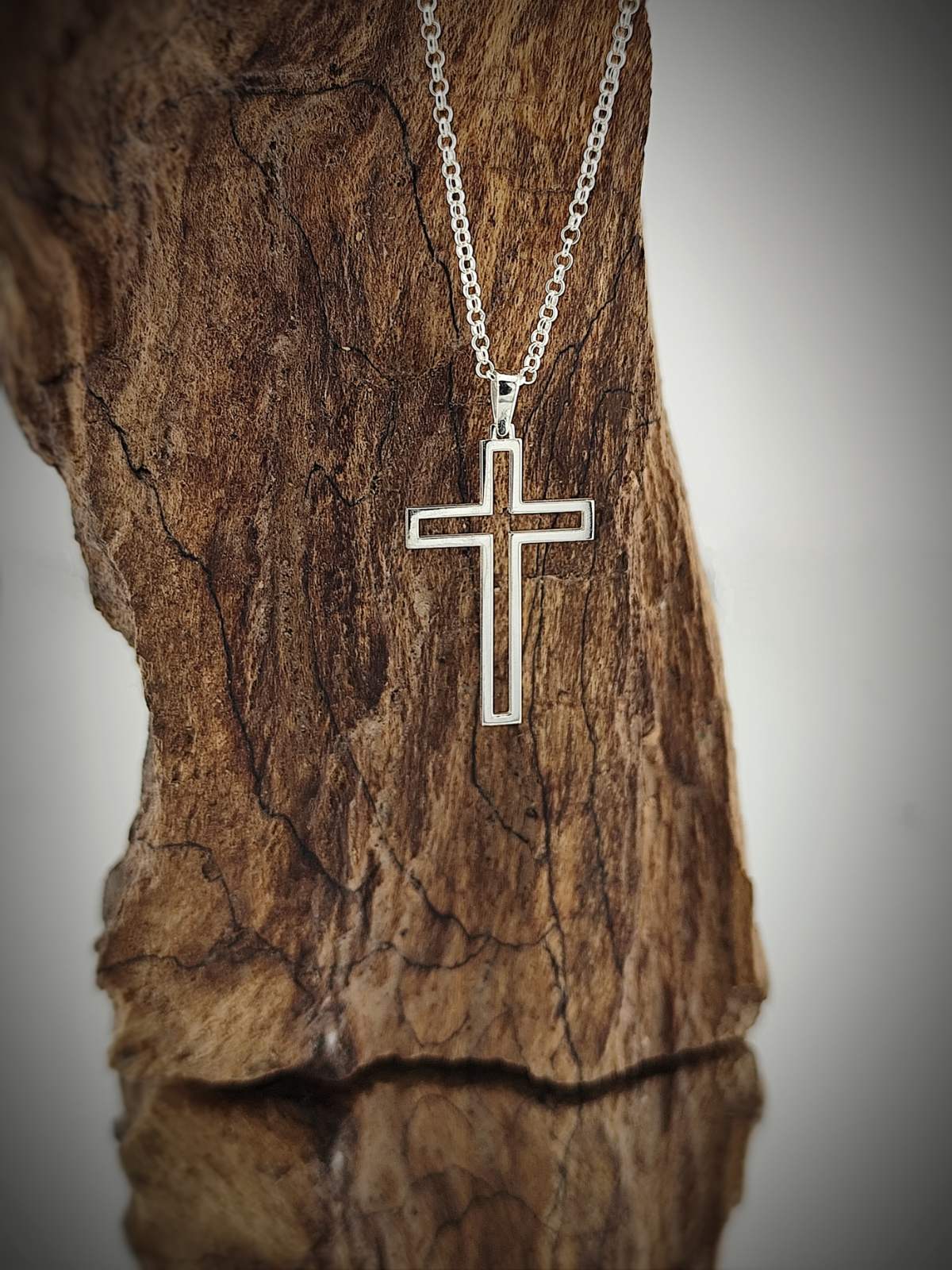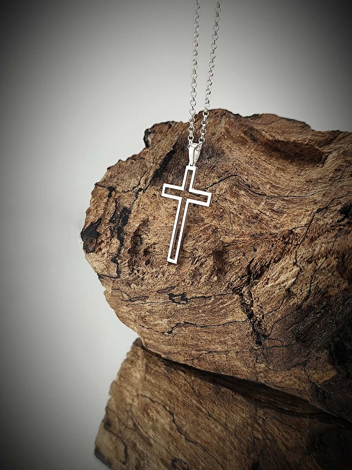 Сребърен кръст с минималистичен дизайн – символ на вяра, сила и вътрешен баланс. Подходящ както за жени, така и за мъже.