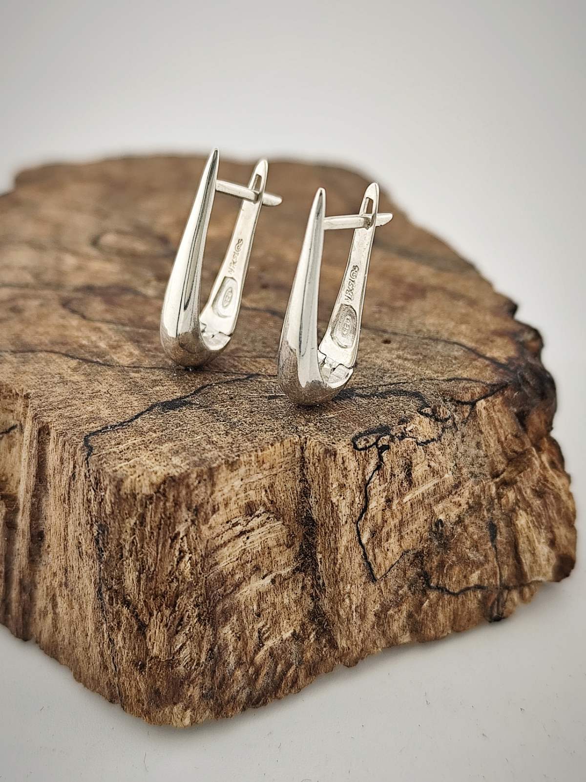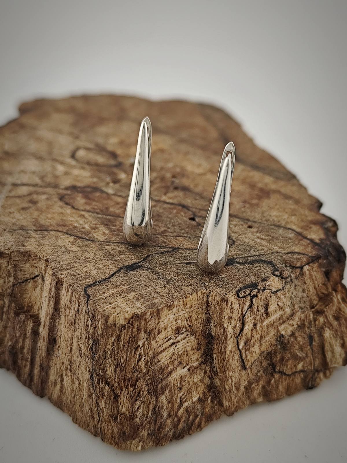 Обеците са изработени от сребро и внимателно полирани, за да се подчертае чистата линия на дизайна.