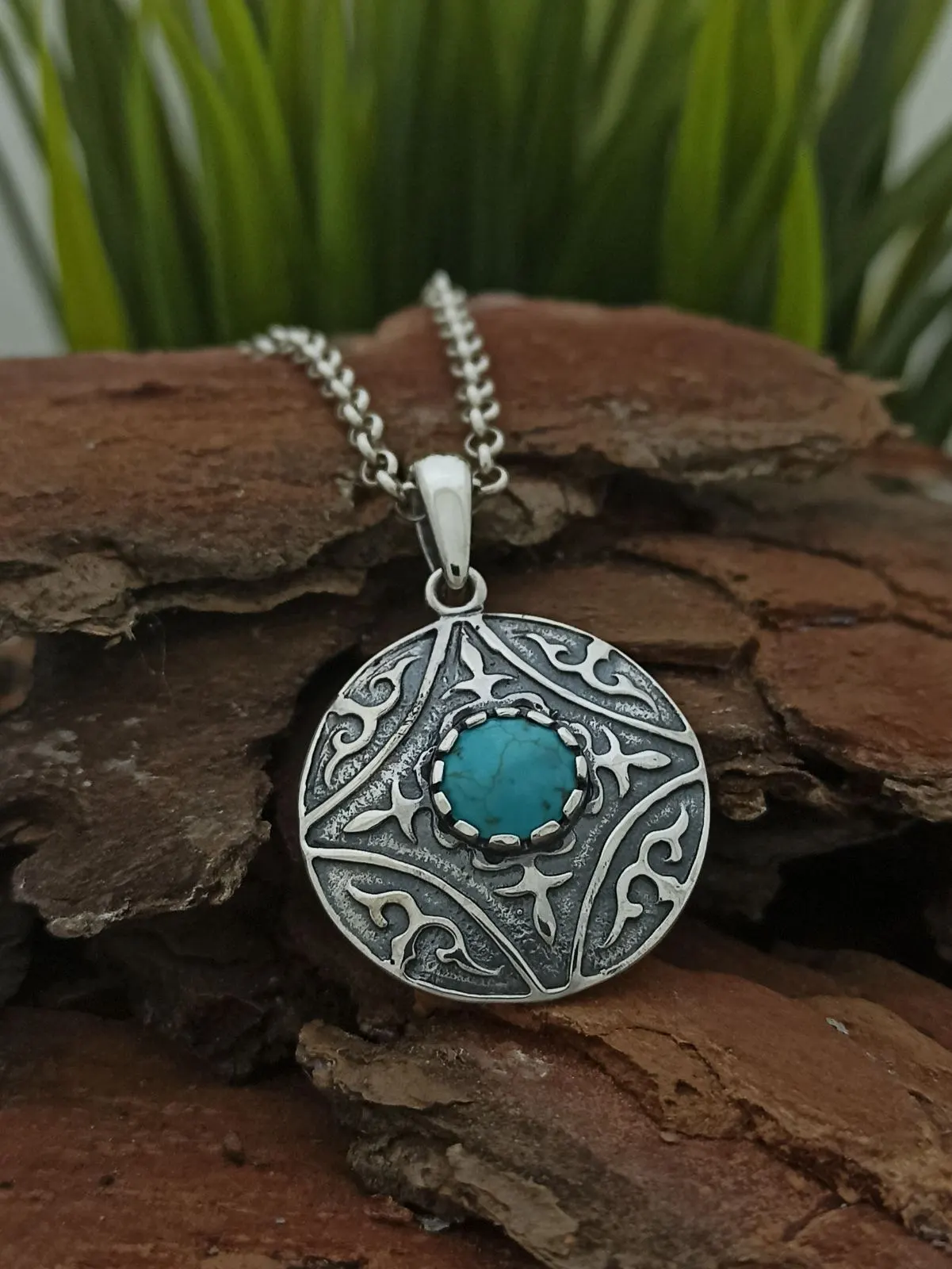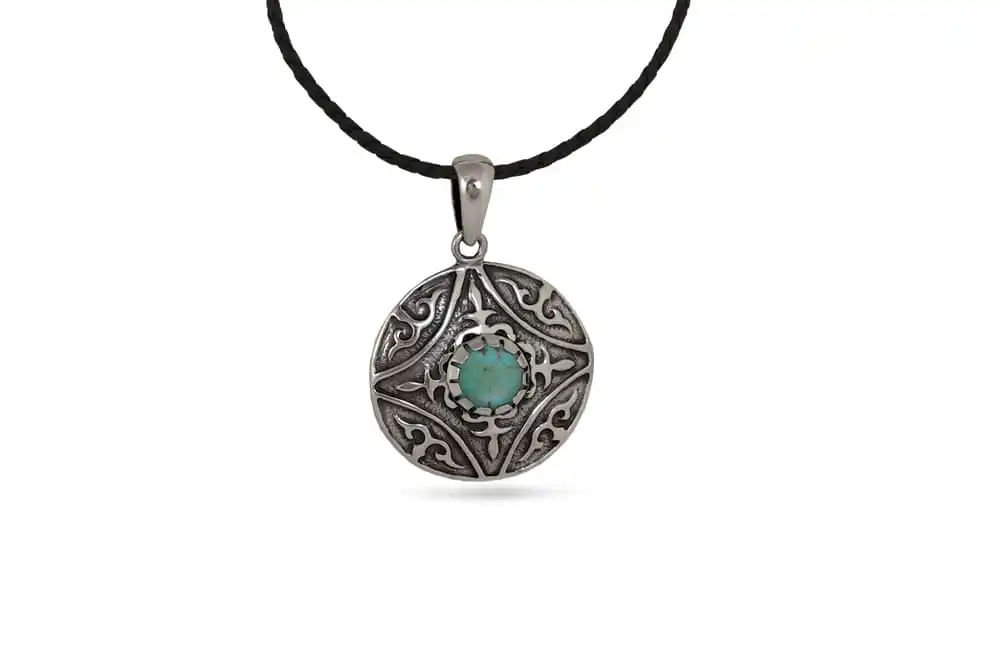 Сребърен медальон с тюркоаз 1197M от Studio Nikolas. Част от пълен комплект бижута изработени от сребро и допълени от красотата на камъка тюркоаз: пръстен, обеци, медальон и гривна. Ръчно изработени бижута от сребро с проба 925. СЕРТИФИКАТ ЗА АВТЕНТИЧНОСТ.