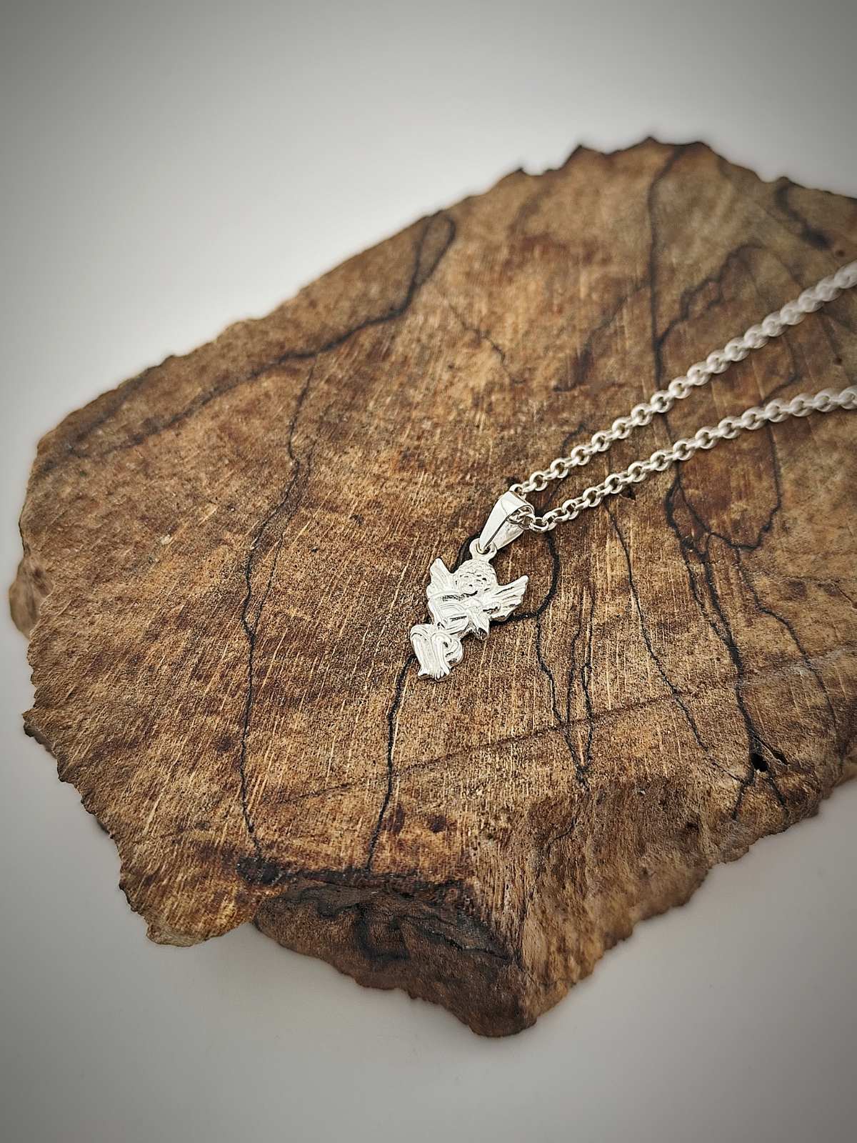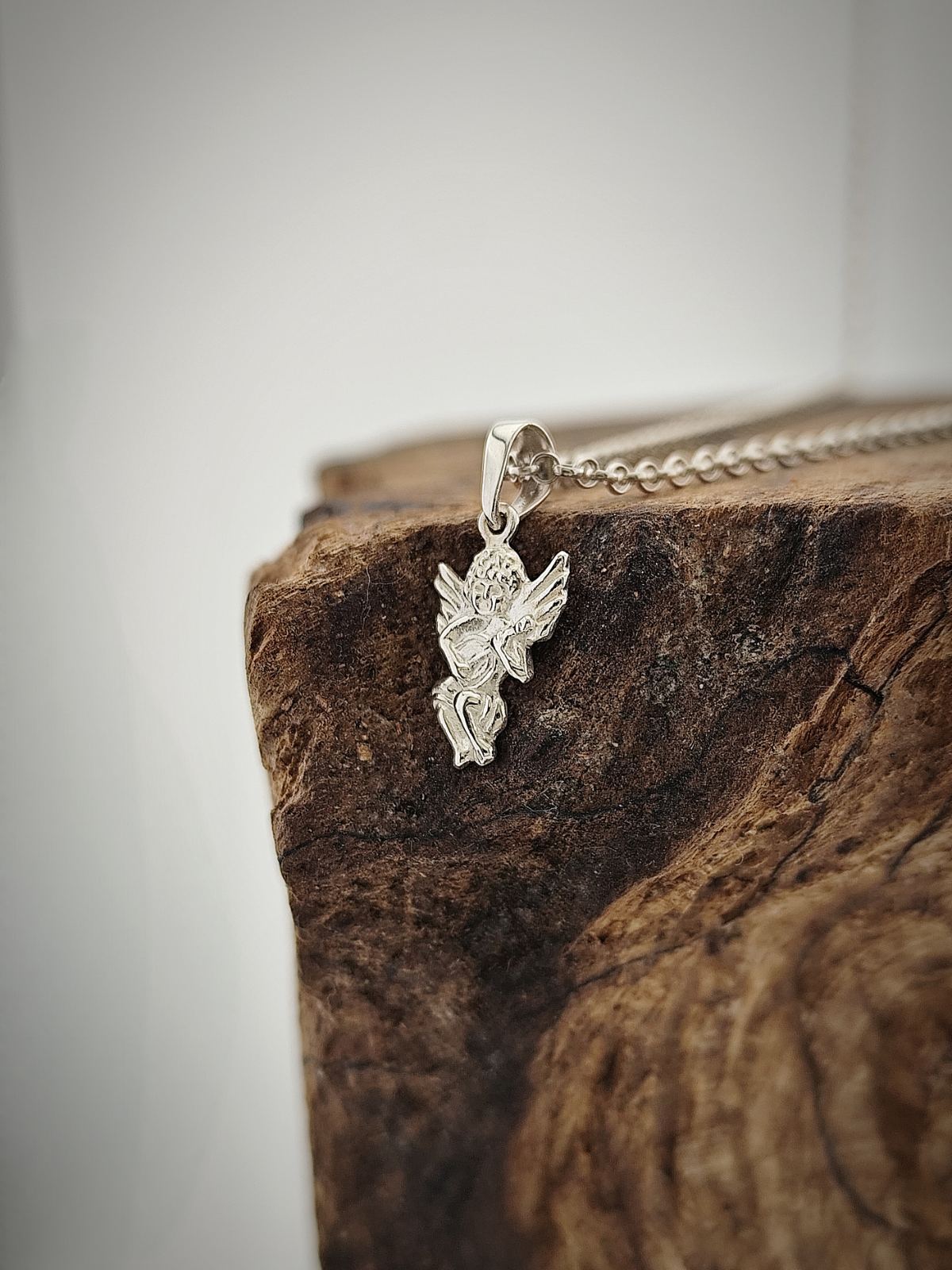 Изящен медальон от сребро 925 във формата на ангел – символ на закрила, доброта и духовна сила. Деликатен и изтънчен аксесоар, подходящ за всекидневно носене или като емоционален подарък за любим човек.