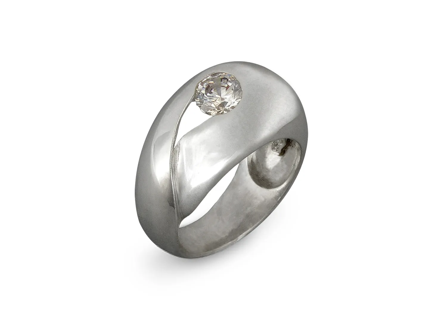 Дамски сребърен пръстен с циркон. Масивен пръстен от сребро с единичен цирконий модел 265R на Студио Николас.
