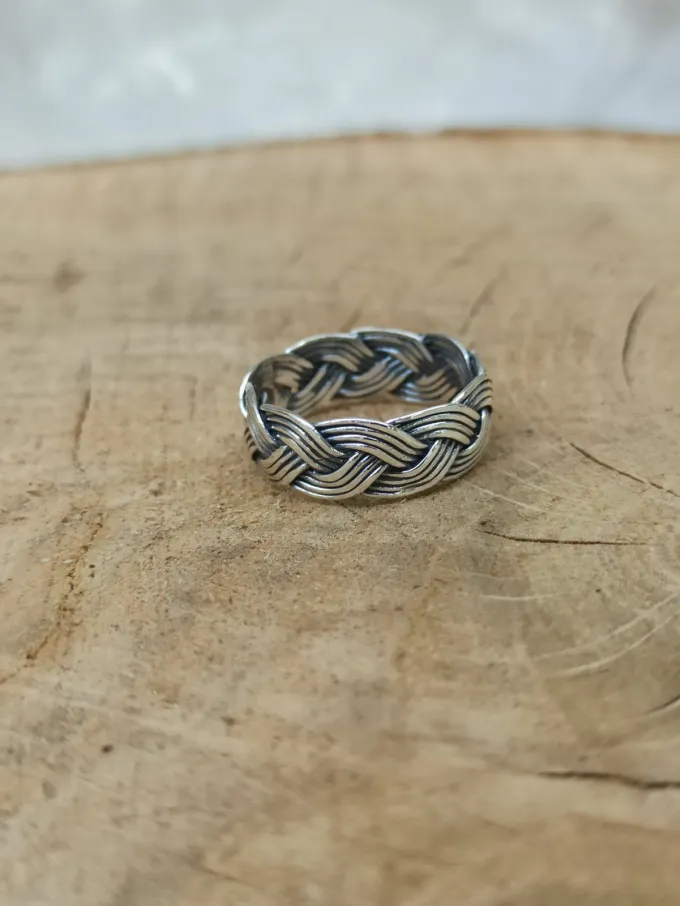 Дамски сребърен пръстен “Плитка” патиниран модел 1122R с ръчна изработка от Студио Николас. Комплект бижута от сребро – подходящи за подарък на жена! Широчина на пръстена 0,8 см.
