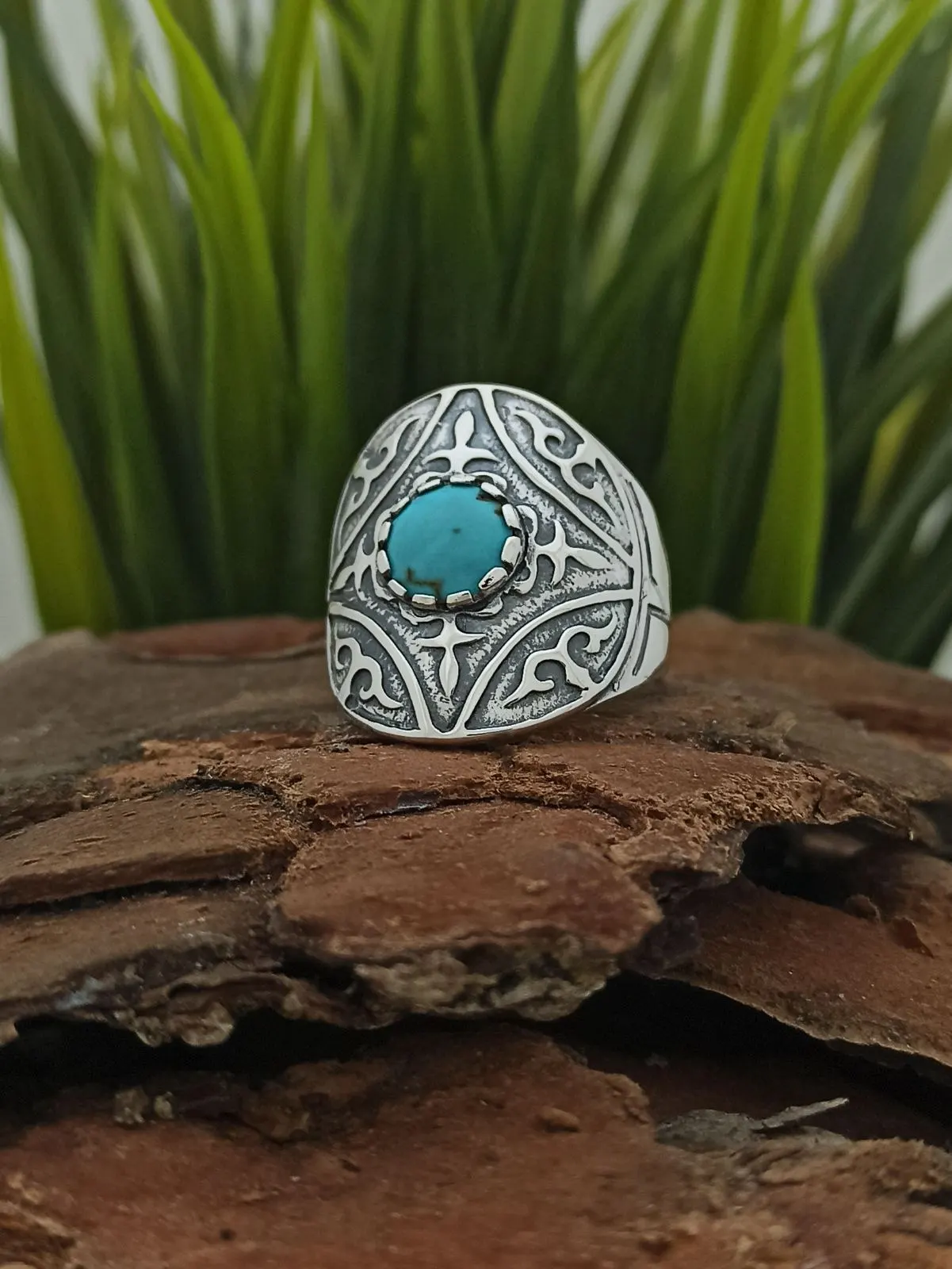 Дамски сребърен пръстен с тюркоаз 1195R. Ръчно изработен модел по дължината на пръста от сребърни бижута с марката на Студио Николас.