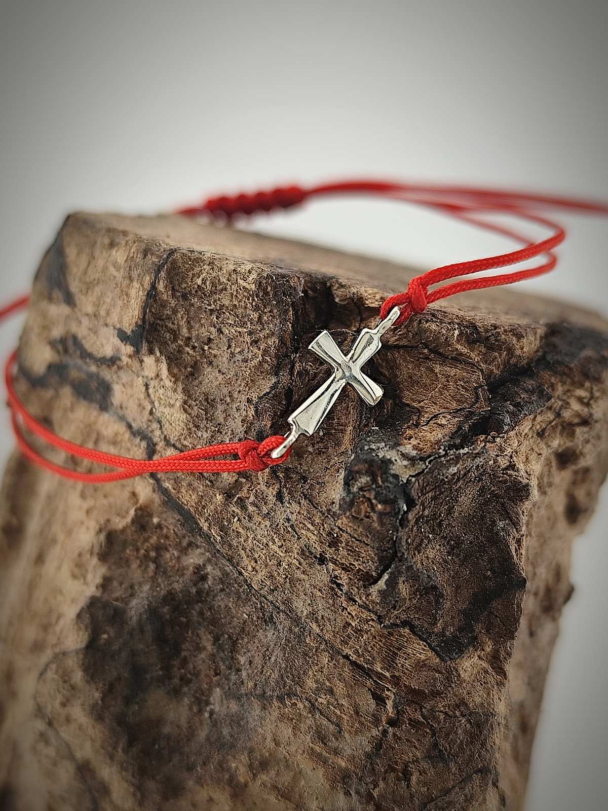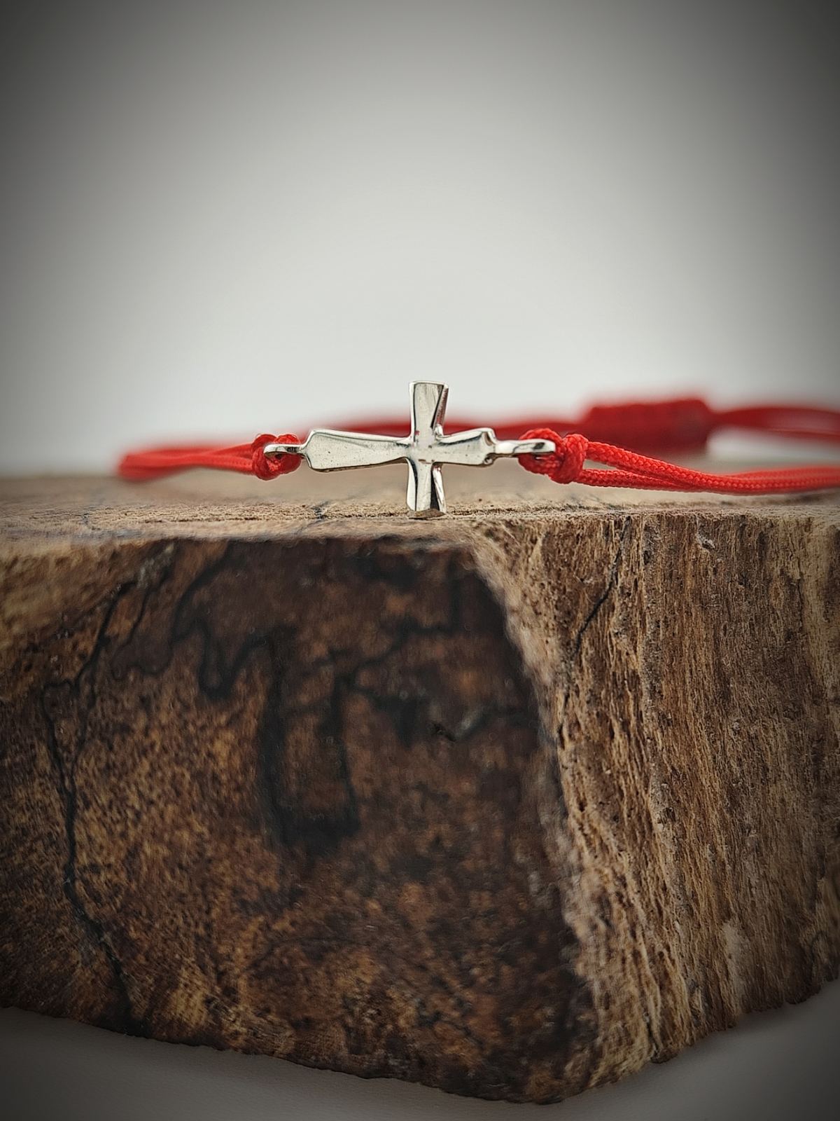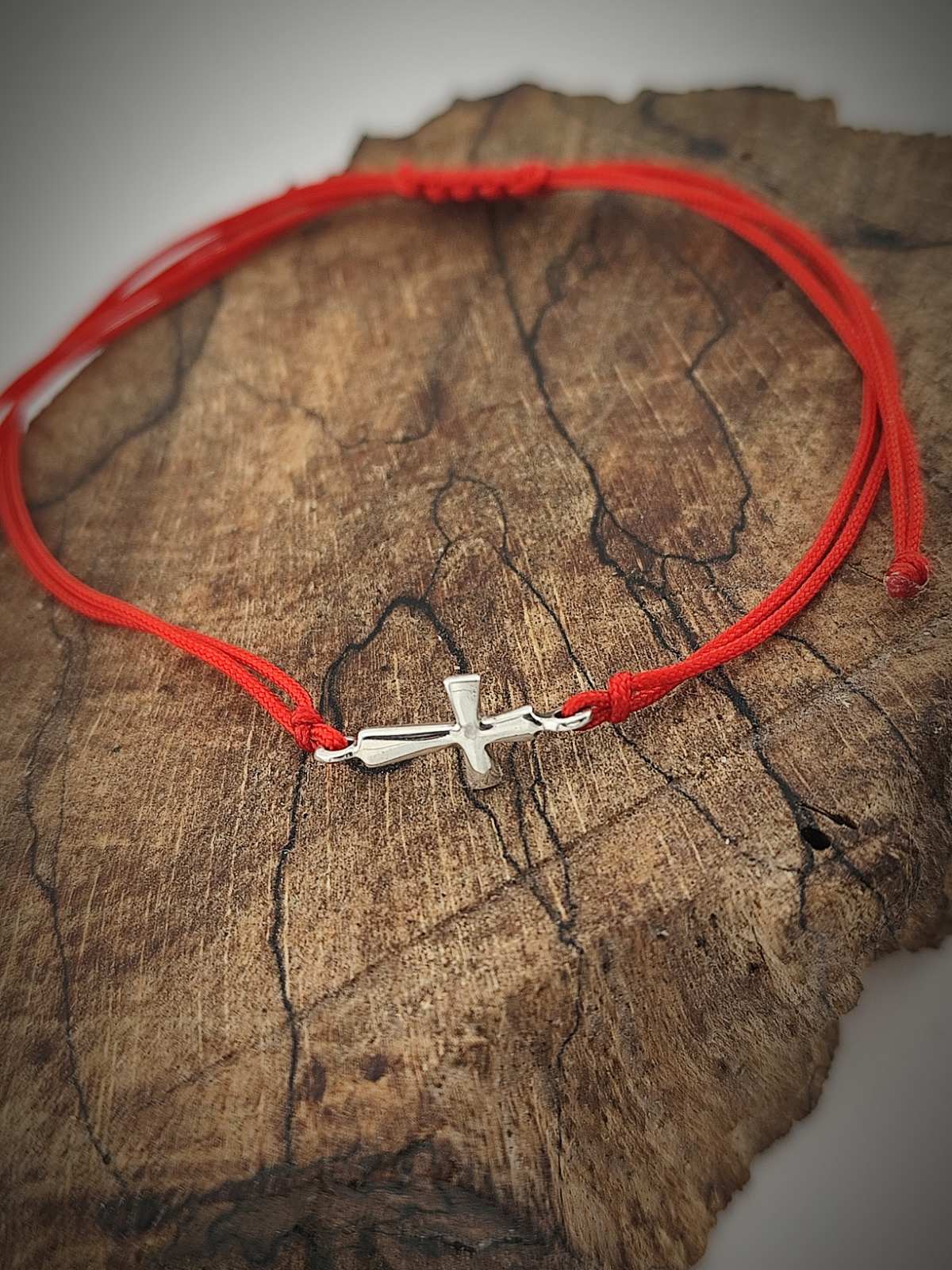 Нежна гривна с червен конец и елегантно сребърно кръстче – символ на вяра, закрила и вътрешна сила. Универсално бижу с духовно значение, подходящо за всеки.
