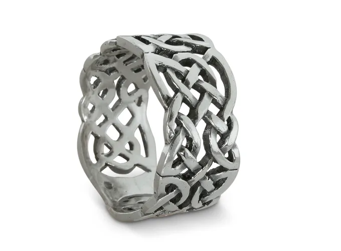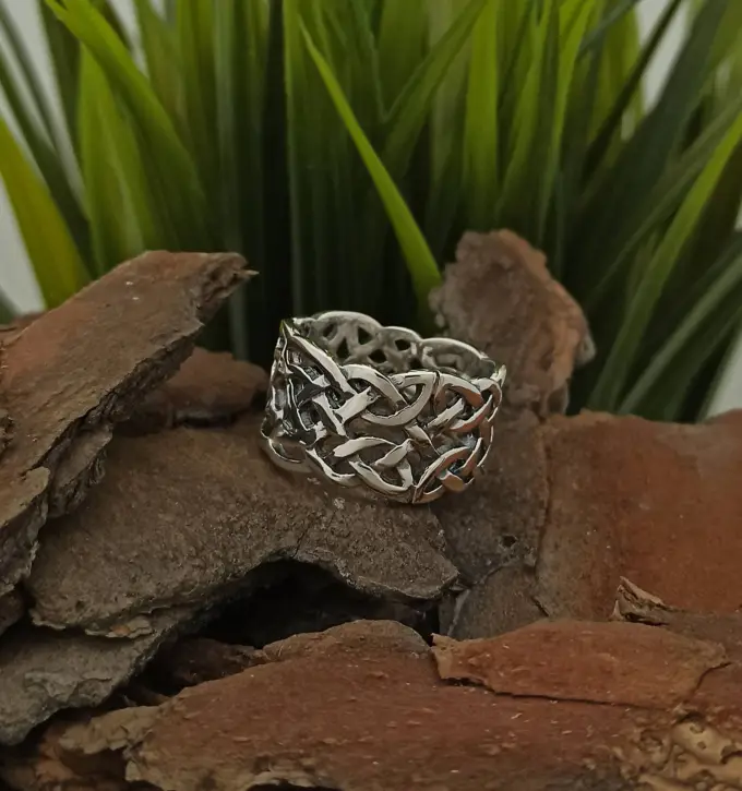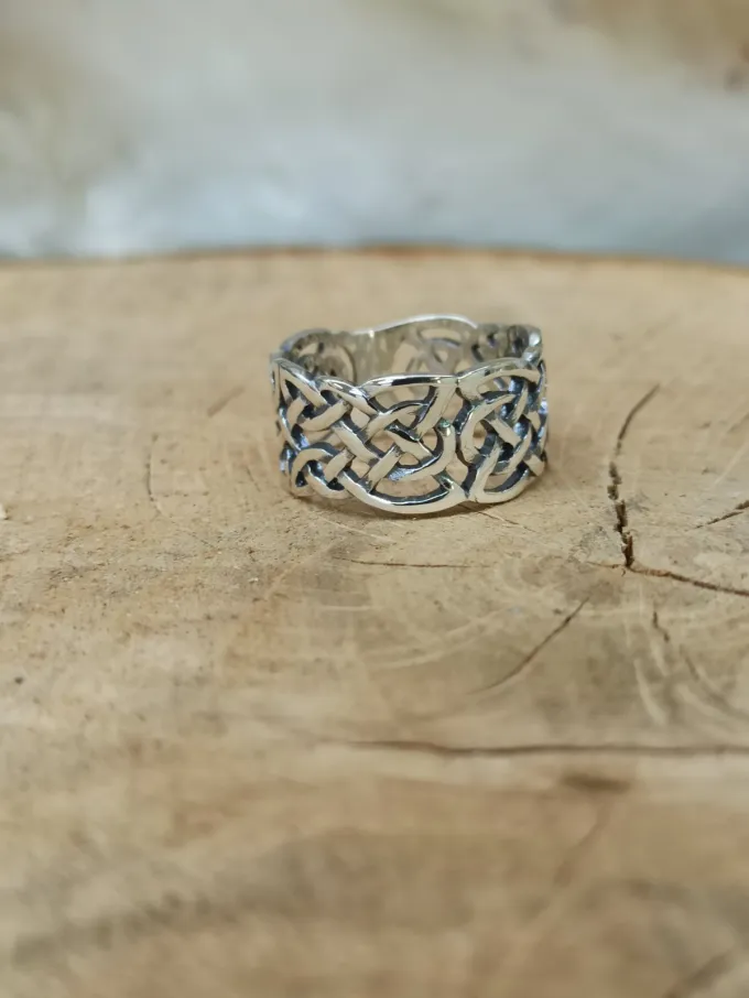 Пръстен от сребро с келтска плетеница, авторски модел 350t от трайбъл серията на Nikolas. Сребърна халка с ажури и преплетени мотиви, широчина на лентата: 1.20см.