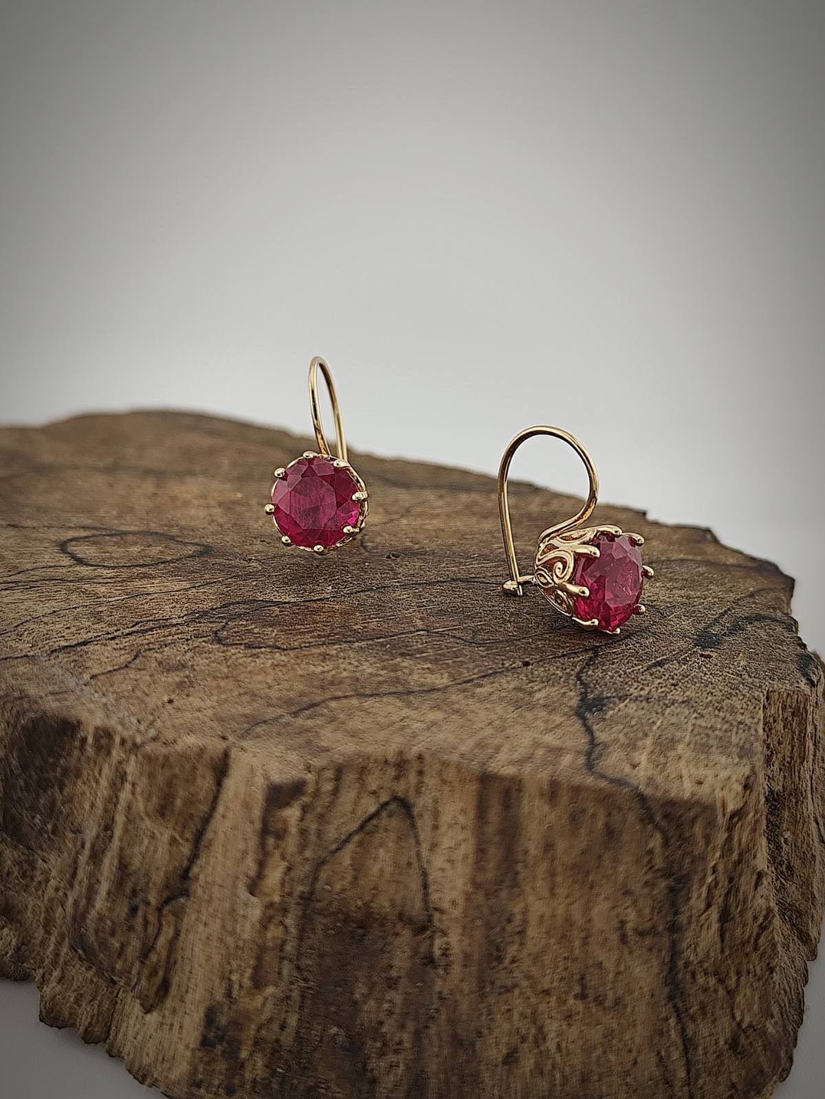 Златни обеци с рибинено червен циркон